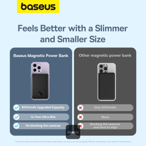 S bezdrátovou nabíječkou Power Bank Baseus Magnetic MagSafe je nabíjení snadné a zabere velmi málo času. Powerbanky s vestavěnými magnety poskytují dokonalé zarovnání po připojení k vašemu iPhone 15, iPhone 15 Pro a iPhone 15 Pro Max. A nabízí působivé rychlé bezdrátové nabíjení, až 15W a 20W přímé drátové nabíjení