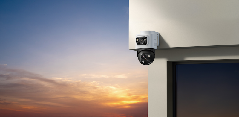 Horní širokoúhlá kamera 4K poskytuje pevný výhled 122° na celou scénu, zatímco spodní kamera 2K PTZ automaticky zaostří až na vzdálenost 50 metrů. Když horní kamera detekuje objekt, spodní PTZ kamera se na něj zaměří, automaticky ho sleduje a zaostří v ostrém, vycentrovaném záběru z vzdálenosti až 50 metrů. 360° pro kompletní pokrytí.