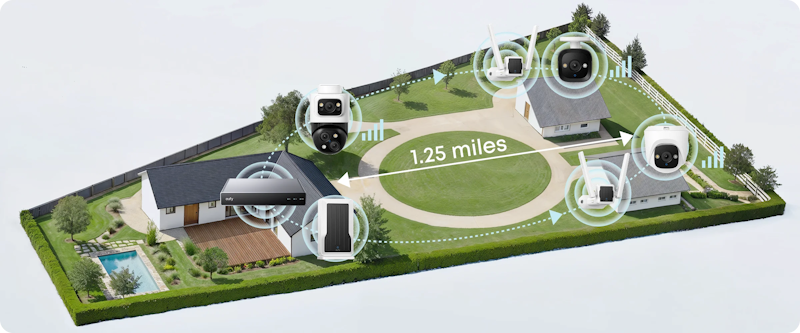 Sledujte více živých přenosů prostřednictvím aplikace eufy, webového portálu nebo displeje. Funguje s Alexou a Google Voice Assistant. Kompatibilní s dalšími bezpečnostními kamerami eufy. (K provozu je vyžadován modul eufy Wi-Fi.)