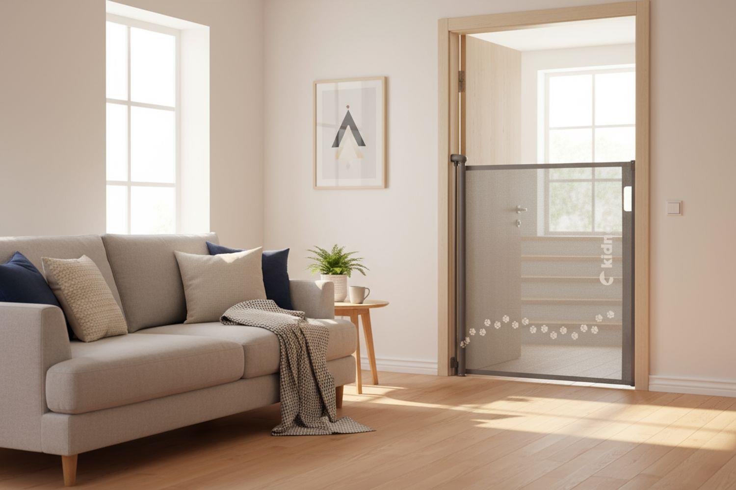 Zatahovací ochranná branka Sakerhet zajistí bezpečí vašich dětí i mazlíčků. Díky nastavitelné šířce až 140 cm, rolovací síťovině a dvojitému zámku se dokonale přizpůsobí každému prostoru – praktická, stylová a spolehlivá volba pro váš domov.