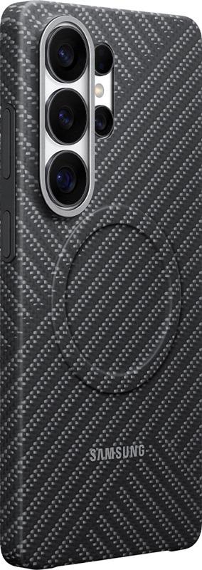 Samsung Carbon Magnetic Case kombinuje pevnost syntetického uhlíkového vlákna s elegantním, tenkým designem. Stylový karbonový vzor zvyšuje odolnost proti nárazům a poškrábání a dodává telefonu luxusní vzhled.