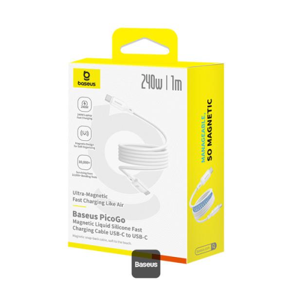 Baseus PicoGo Magnetický samonavíjecí kabel USB-C na USB-C 240 W - tekutý silikon, rychlé nabíjení a skladování bez zamotání
