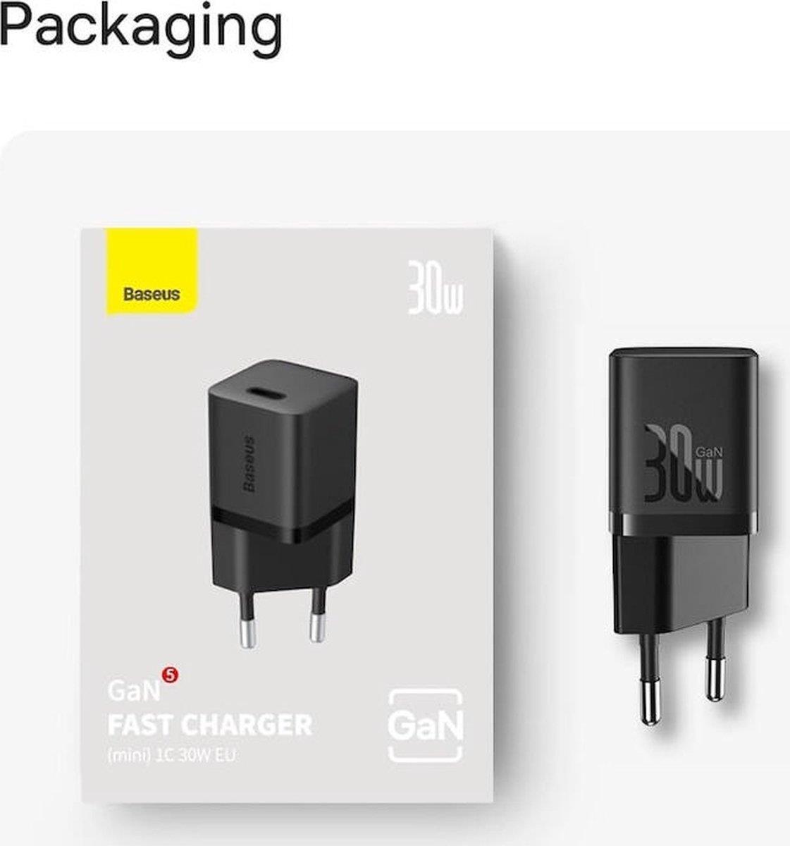 Nabíječka do sítě Baseus GaN5 30W s USB-C/USB-C kabelem 100W 1m, 1xUSB-C černá