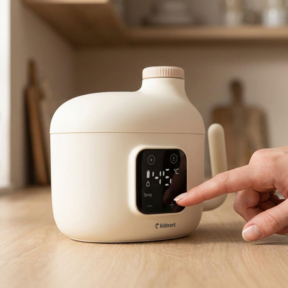 Ohřívač dětské stravy Kidnort připraví nápoj přesně a bezpečně – doma i na cestách. Díky přesnému nastavení teploty, sterilizačnímu režimu a intuitivnímu dotykovému ovládání je praktický, spolehlivý a vždy připravený pro vaše dítě.