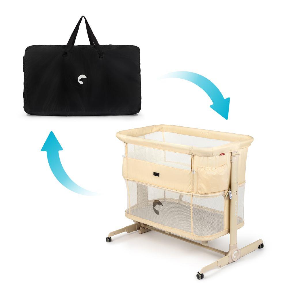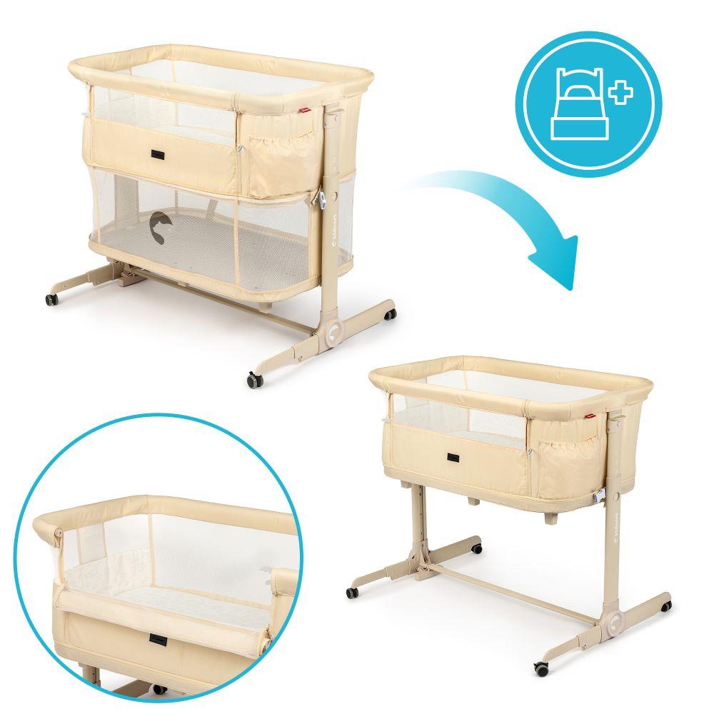 Díky 6 úrovním nastavení výšky postýlku jednoduše sladíte s výškou své postele a budete mít miminko vždy nablízku. Pevné upevňovací pásy zajistí stabilitu a boční strana se zipem umožní během chvilky proměnit přistýlku nebo bezpečný prostor na hraní.