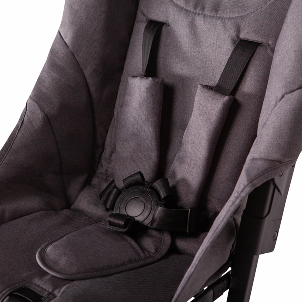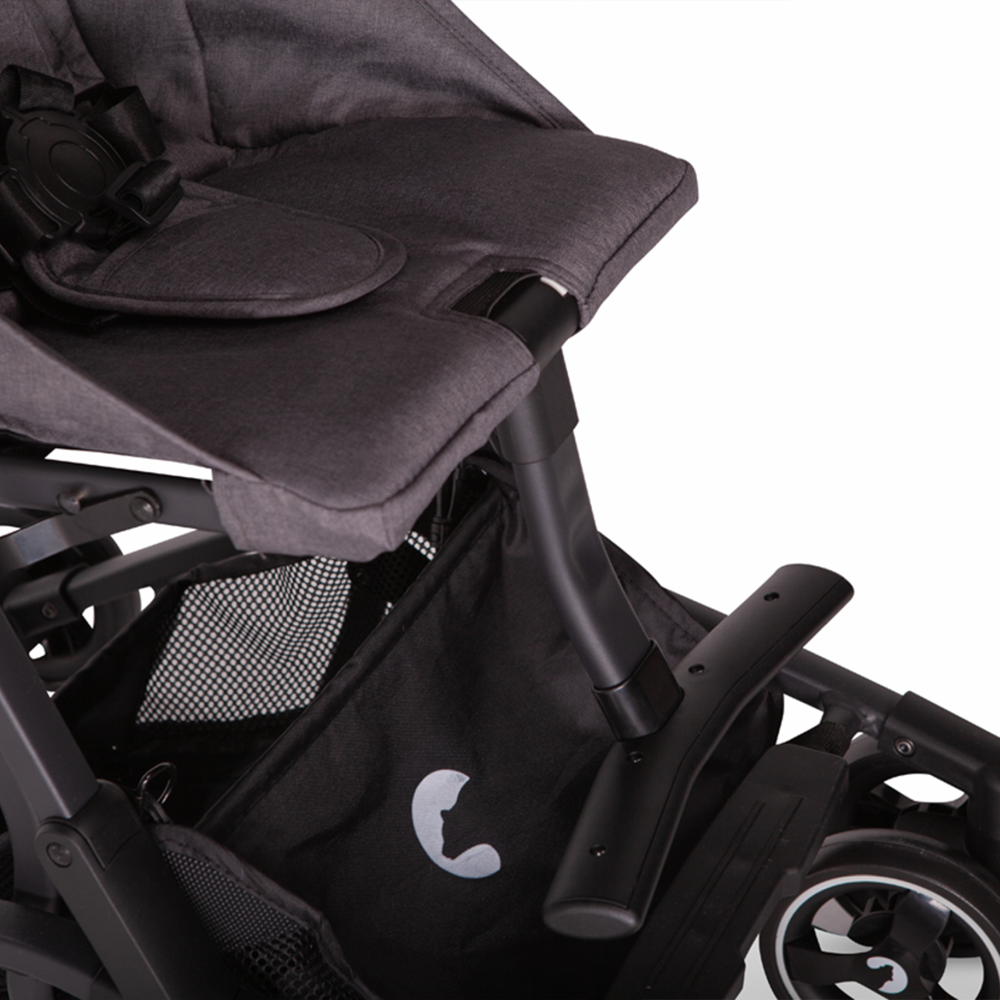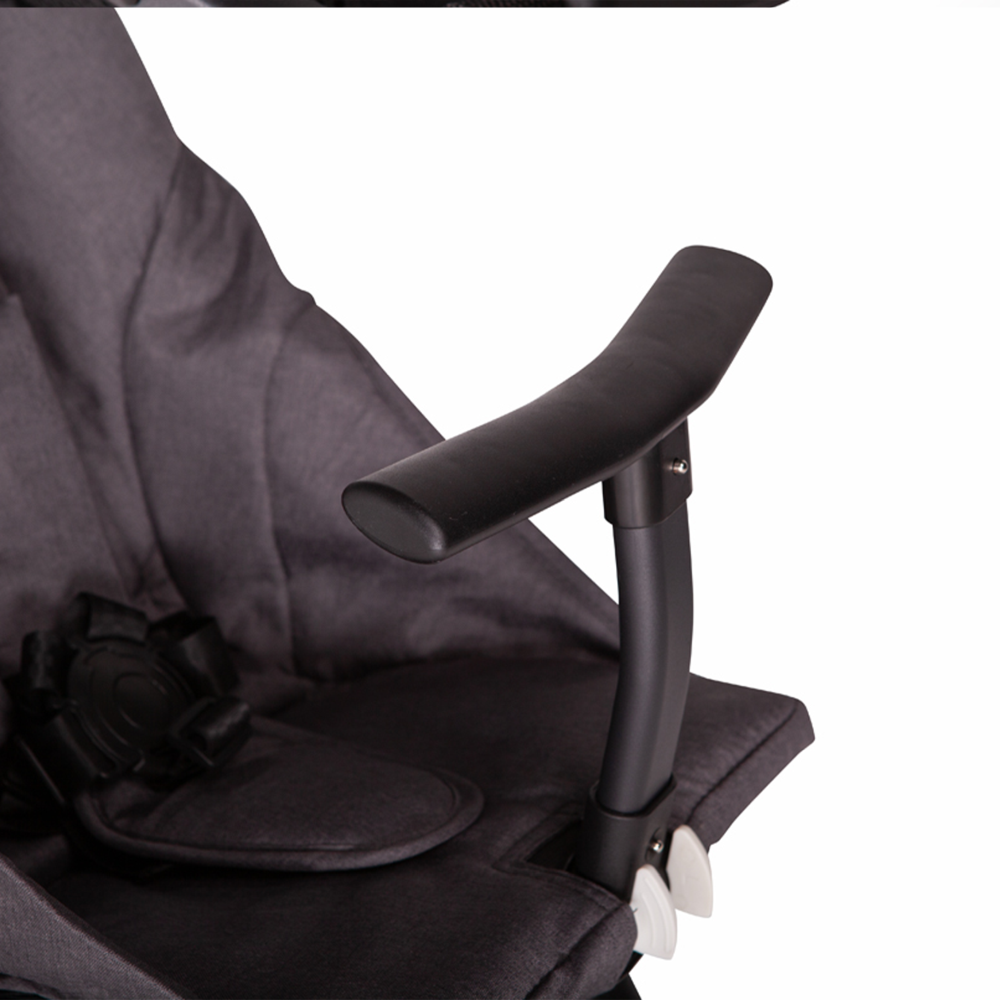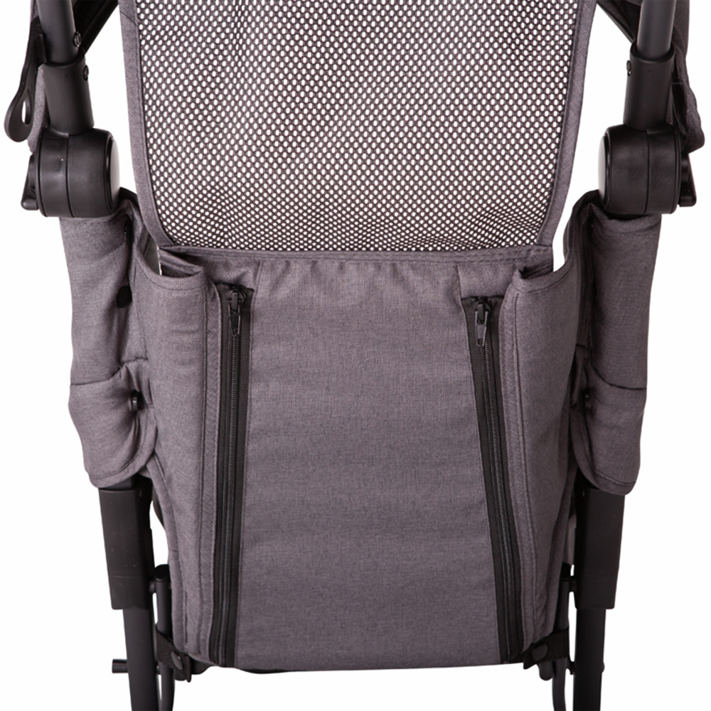 Velká síťovina umístěná v horní části zádové opěrky umožňuje větrání a kontrolu dítěte. Pohodlné řízení kočárku zaručuje rukojeť z ekokůže a i přes své malé rozměry je kočárek vybaven brzdou, která poskytuje další bezpečnost.