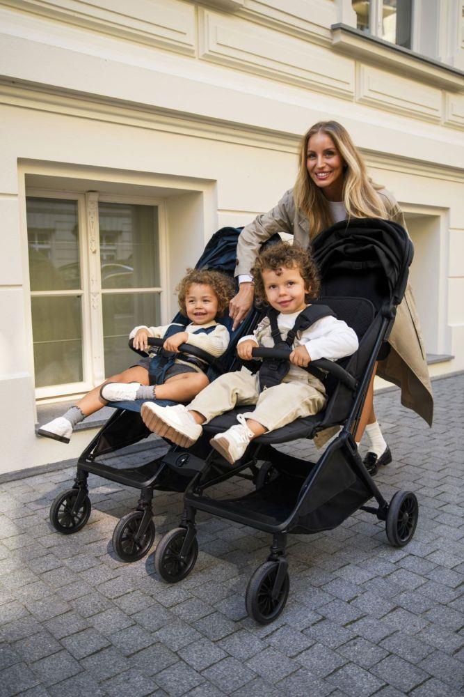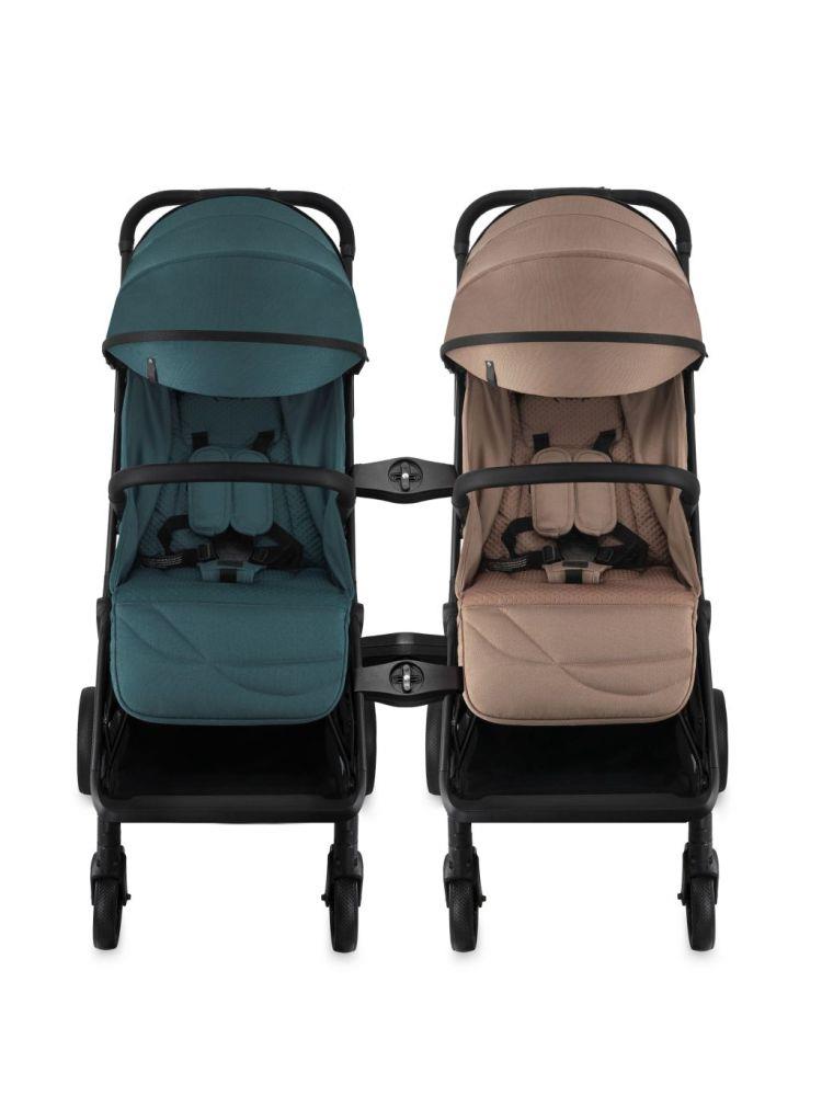 Lze dokoupit sadu adaptérů, které umožňují spojit dva samostatné kočárky do kočárku pro dvojčata.