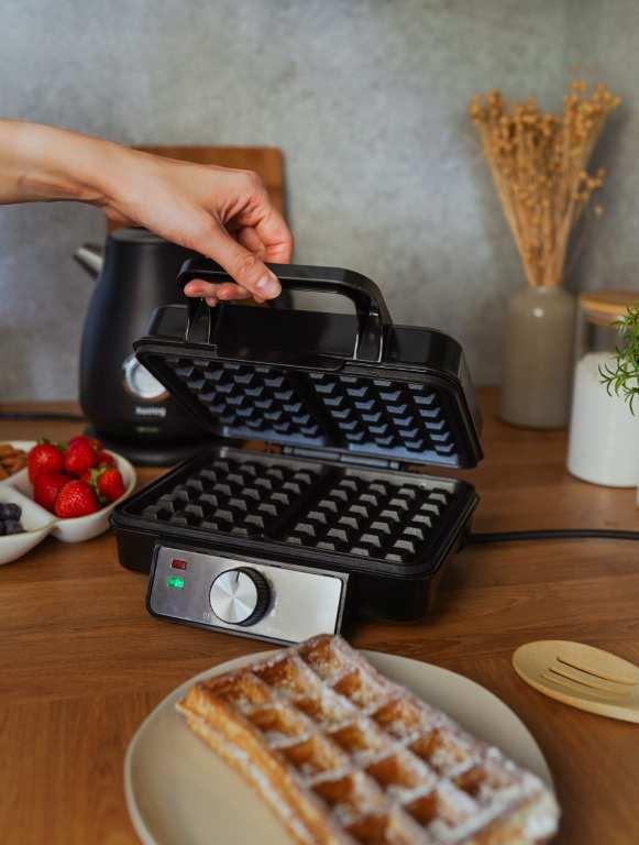 V malém zařízení se skrývá velká síla – výkon 1200 W. Rovnoměrné rozdělování tepla zajišťuje rychlé pečení dokonale křupavých vaflí.